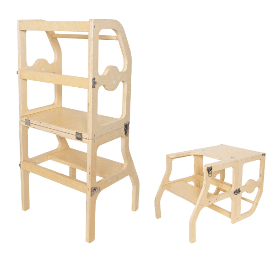 מגדל למידה מתקפל מעץ – כי ללמוד עושים בגובה עיניים!